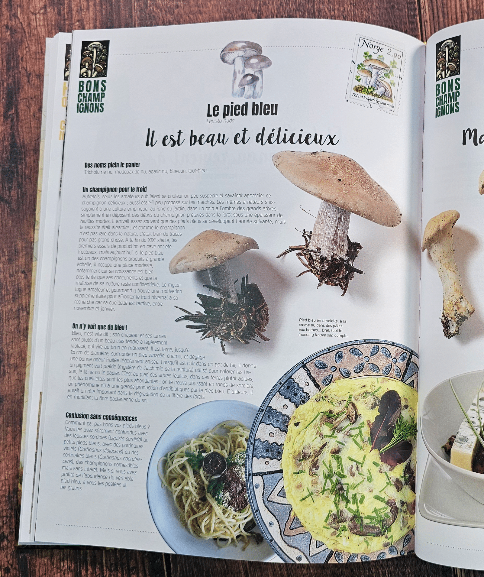 Cette double page rappelle à quel point les champignons sont au cœur de gestes ancestraux : sans levures, pas de pain, pas de fermentation, pas de magie dans la mie. Le livre dévoile ici l’alchimie silencieuse qui opère entre farine, eau et micro-organismes, et restitue toute la beauté d’un savoir-faire millénaire, à la frontière de la biologie et de la culture culinaire.