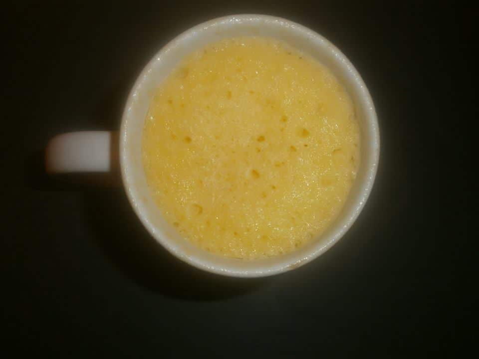 • Dans un mug, ajouter l'œuf. Ensuite, dans cet ordre ajouter le sucre, la farine, la levure, le lait, le jus de citron et l'huile. Mélanger.