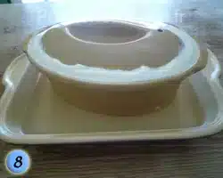 • Dans un bol mettre un peu d'eau tiède et pas mal de farine pour faire comme de la colle afin de sceller la terrine. Disposer le mélange tout autour du couvercle. Mettre la terrine dans un grand plat au bain marie. Dans un four préchauffé à 210°C cuire la terrine 1 heure et 10 minutes. La laisser refroidir et servir avec une petite salade.